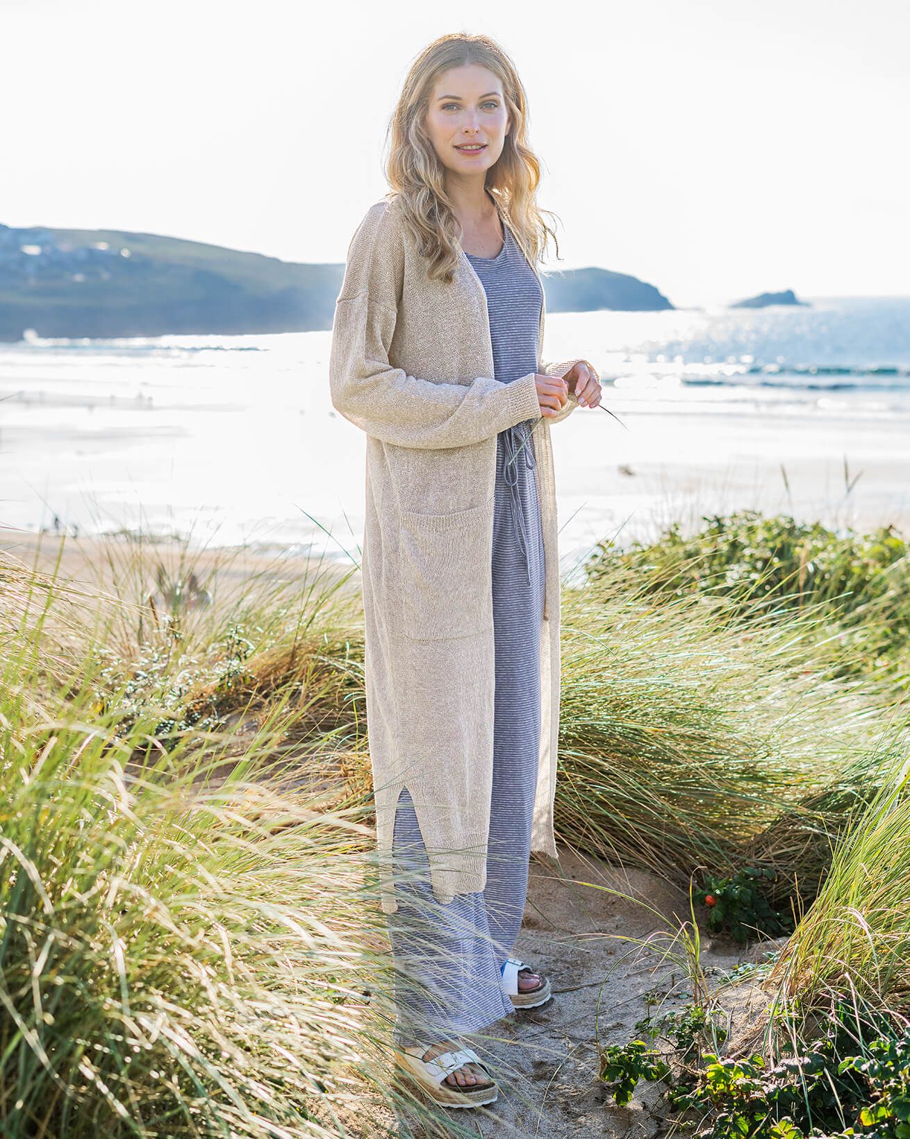 Crafted in pure linen for cooling breathability with a cosy feel that'll make it a winner all year round, our longline cardigan is the ultimate 'shrug it on and go' option.