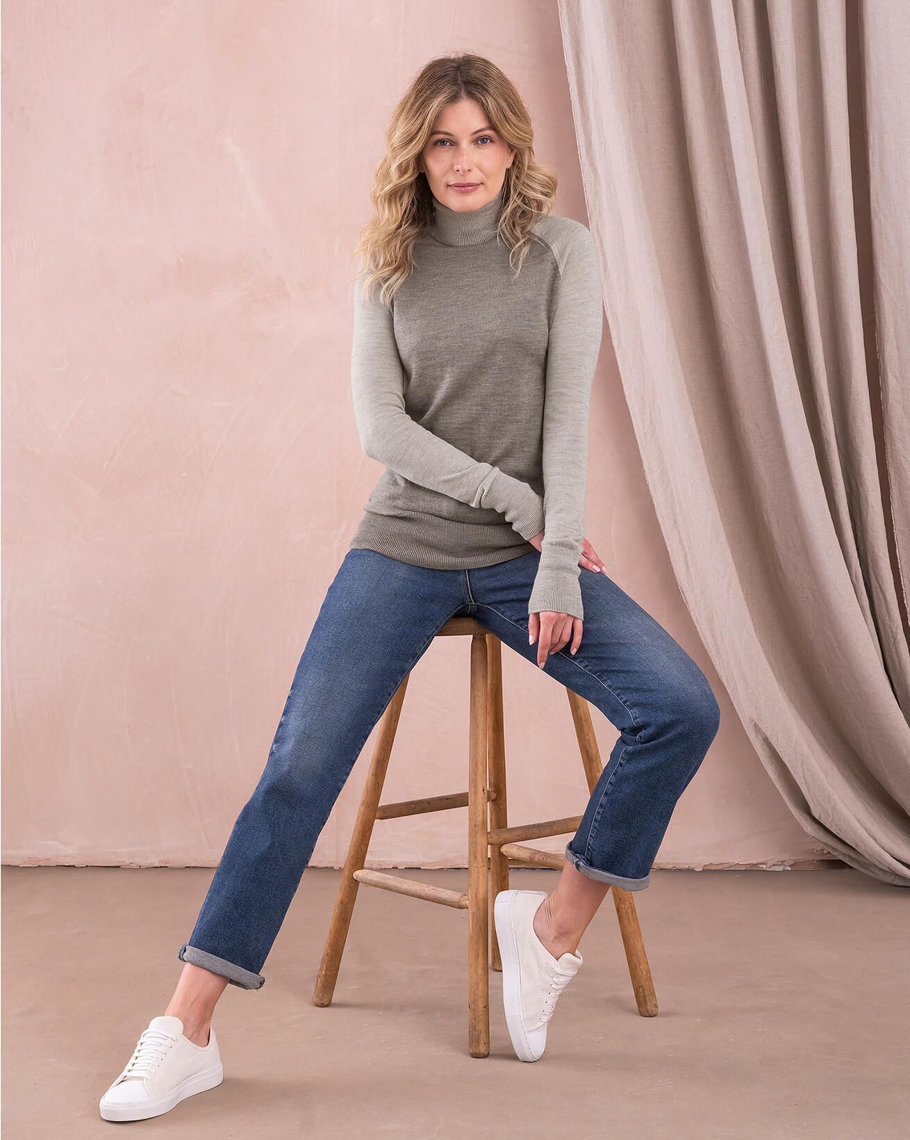 Form-fitting style meets heavenly softness in our Merino turtleneck sweater. This versatile piece is designed to offer a slim fit with a deep-ribbed waistband that falls at the hips, making it a great option for layering. But, in our opinion, it's just perfect on its own.