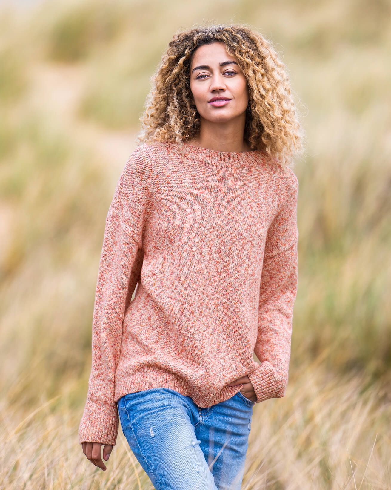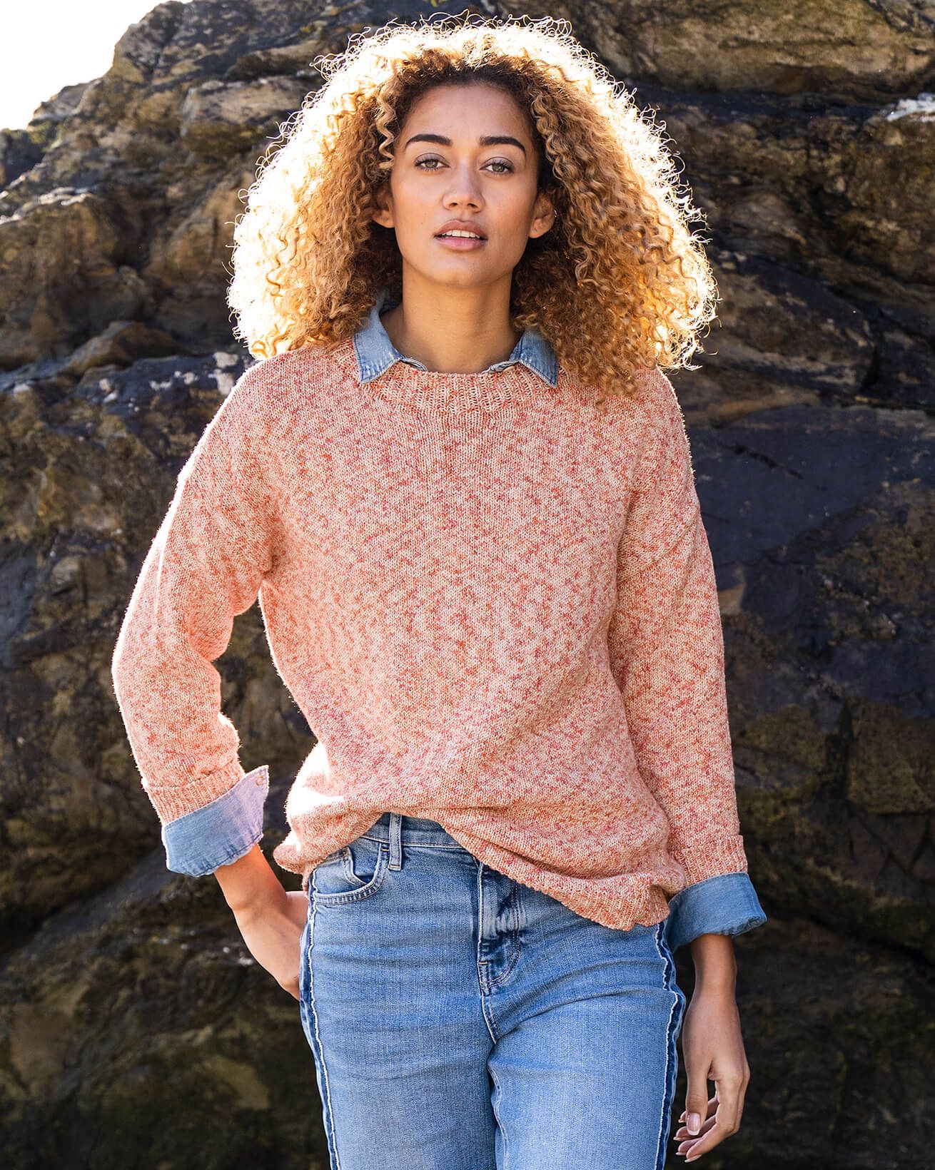 Crafted in an irregular-print yarn that creates a pleasingly mottled, melange effect, our sweater is just the thing for freshening up your new-season wardrobe. The dropped shoulders and crew neckline provide a classic shape that'll work from lounging around at home to heading out on a beach or moorland wander.