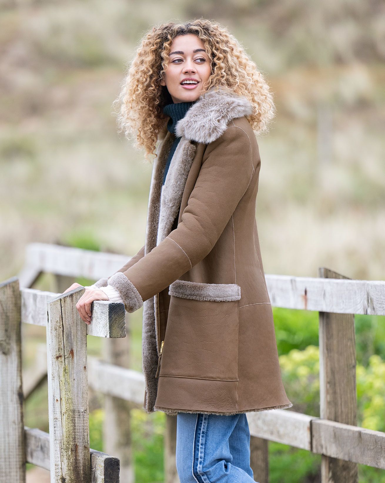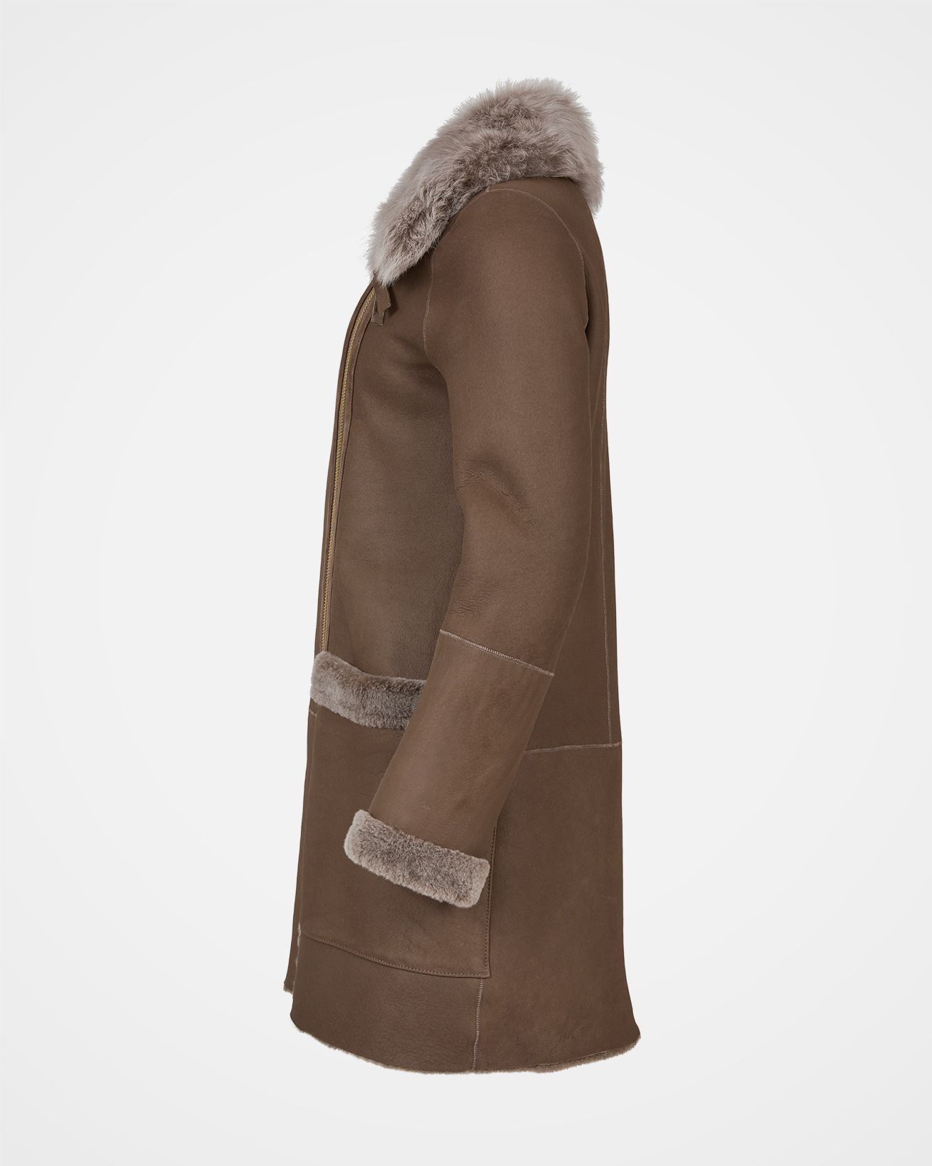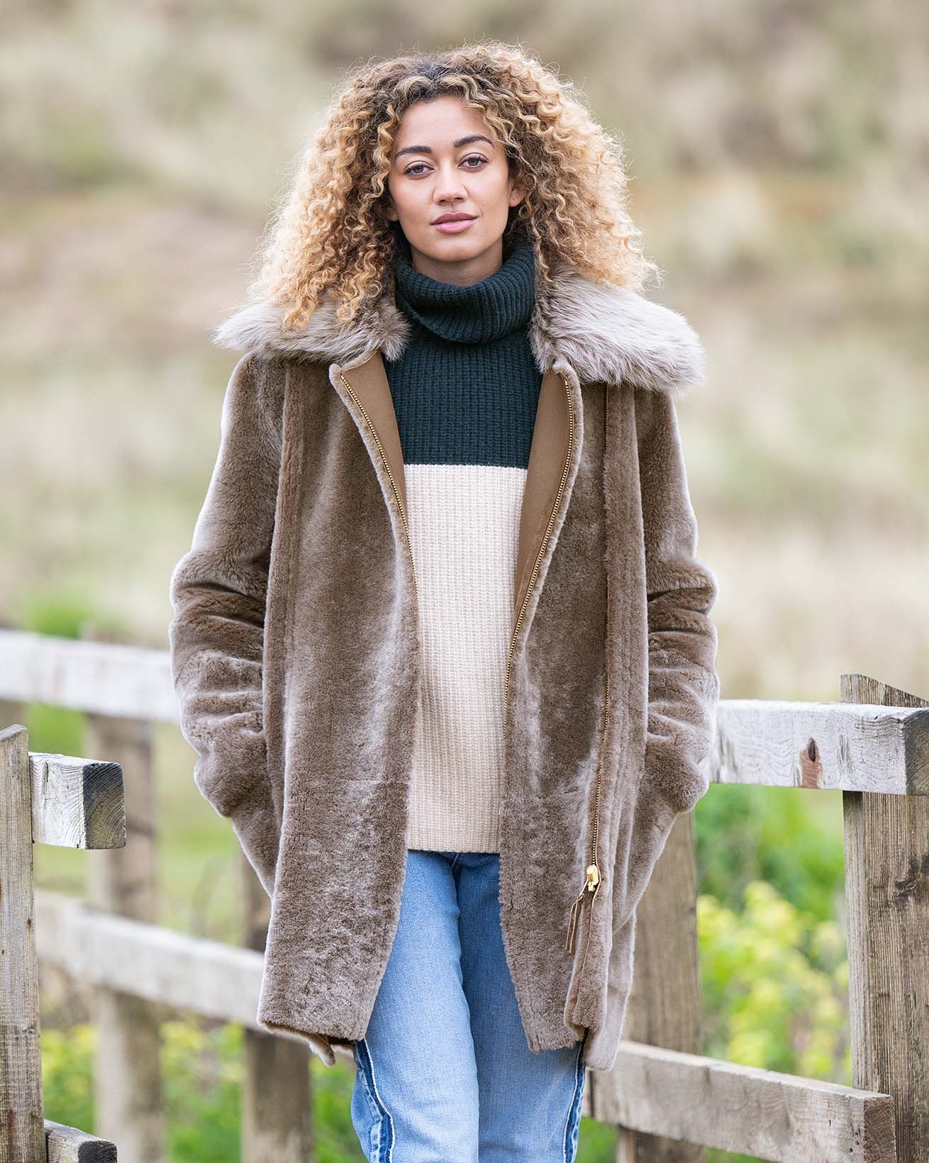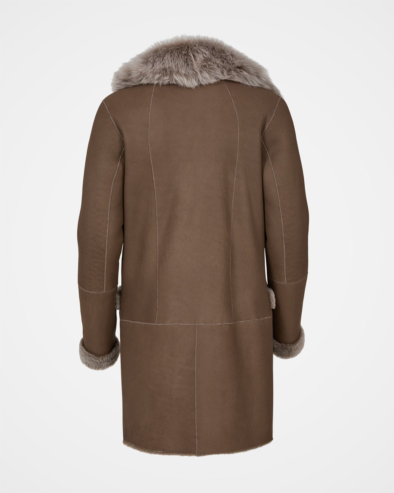 All of our shearing outerwear garments are specialist dry clean only. They are pre-treated to resist marks and stains before they leave us, however, over time you may wish to reapply this treatment at home, and this can be done by using a high-quality protector spray, on the suede/leather side of your garment. Please ensure that you follow the instructions on the can and hold the product at the required distance so that the liquid cannot run down the garment. If your shearling outerwear does become marked, it can be easily sponged and brushed, but for a complete clean, please send it to a specialist dry cleaner.