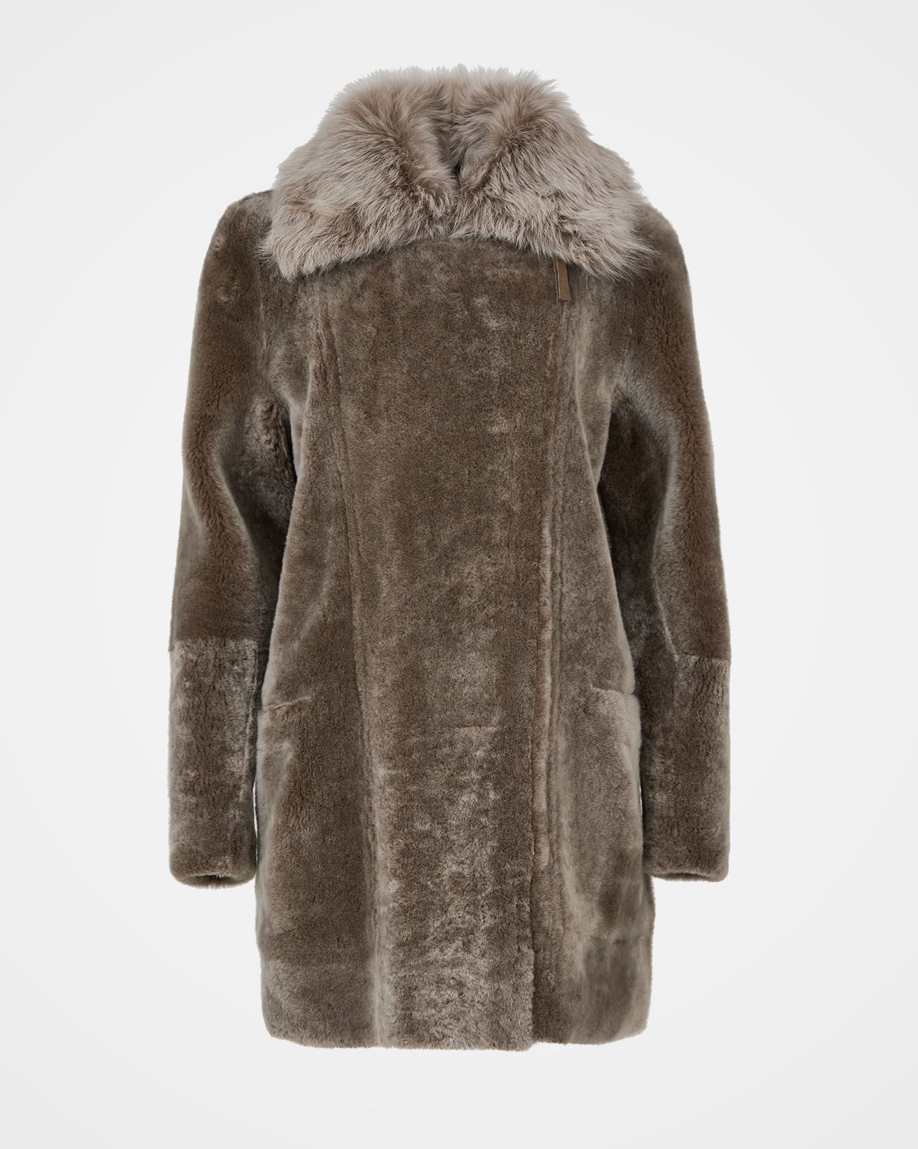 Featuring an oversized collar trimmed with fluffy Toscana, this 2-in-1 coat is a biker-inspired style cut to sit at a three-quarter length to give you extra coverage.