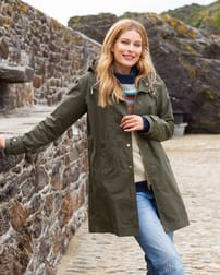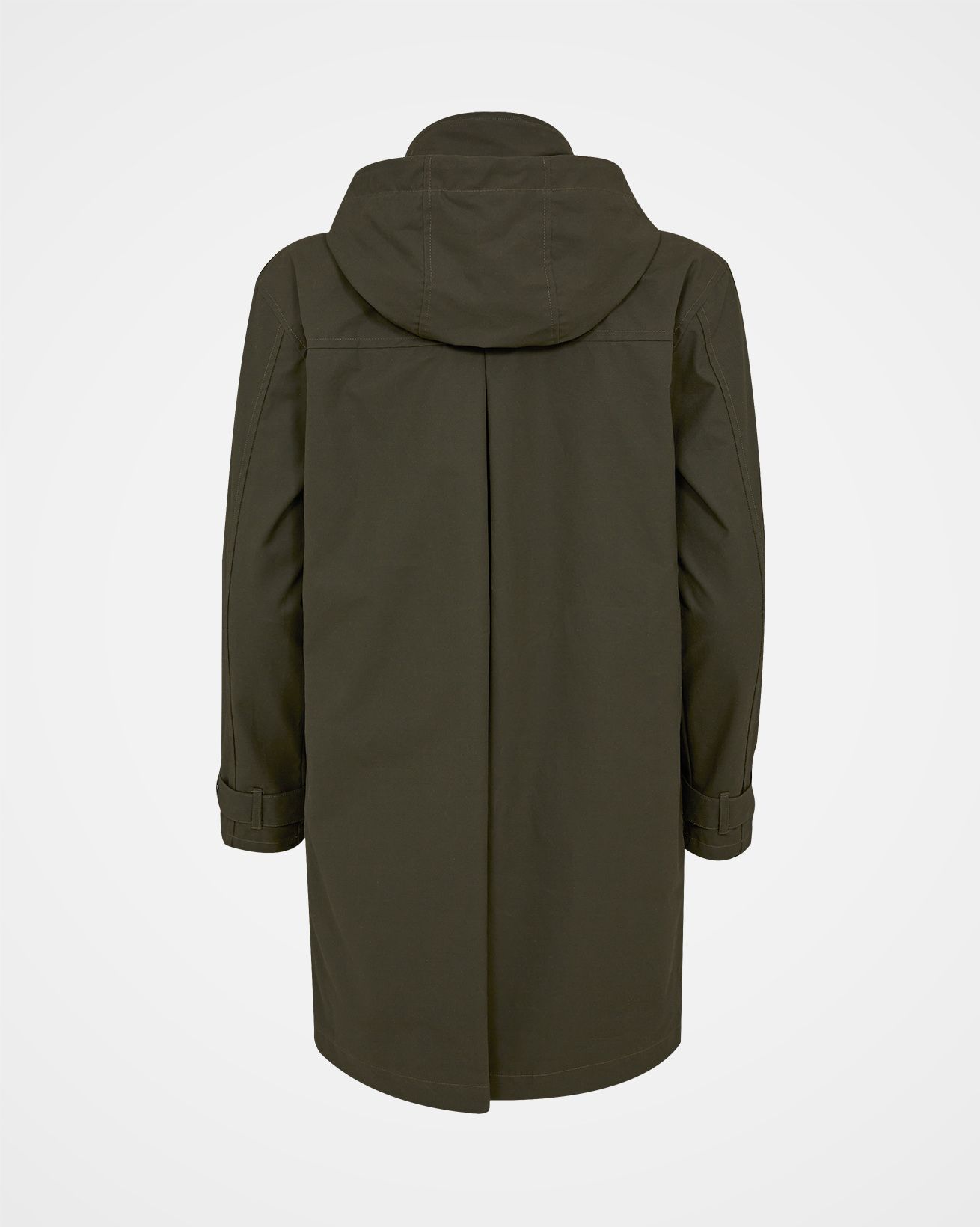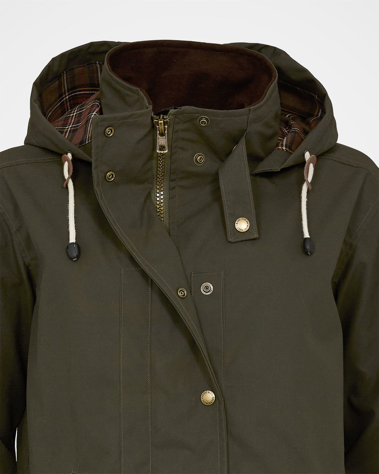Cosy pockets, a cotton-moleskin collar trim and adjustable hood cords complete this must-have piece.