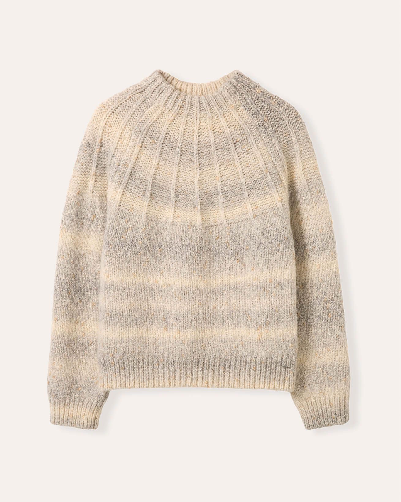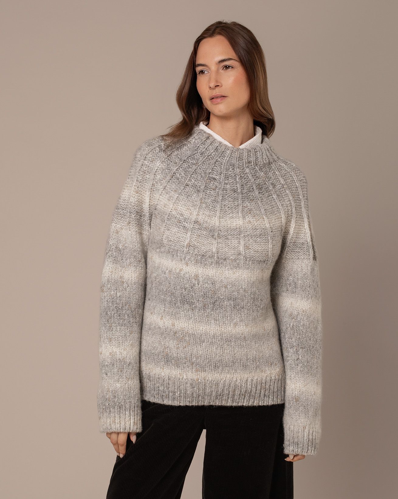 A beautiful natural blend of alpaca and wool, this yarn is lofty, airy, and irresistibly soft. Its ombré effect gently fades through tonal, undyed shades, accented with delicate flecks for added texture. A luxurious yarn that radiates craftsmanship and quality.