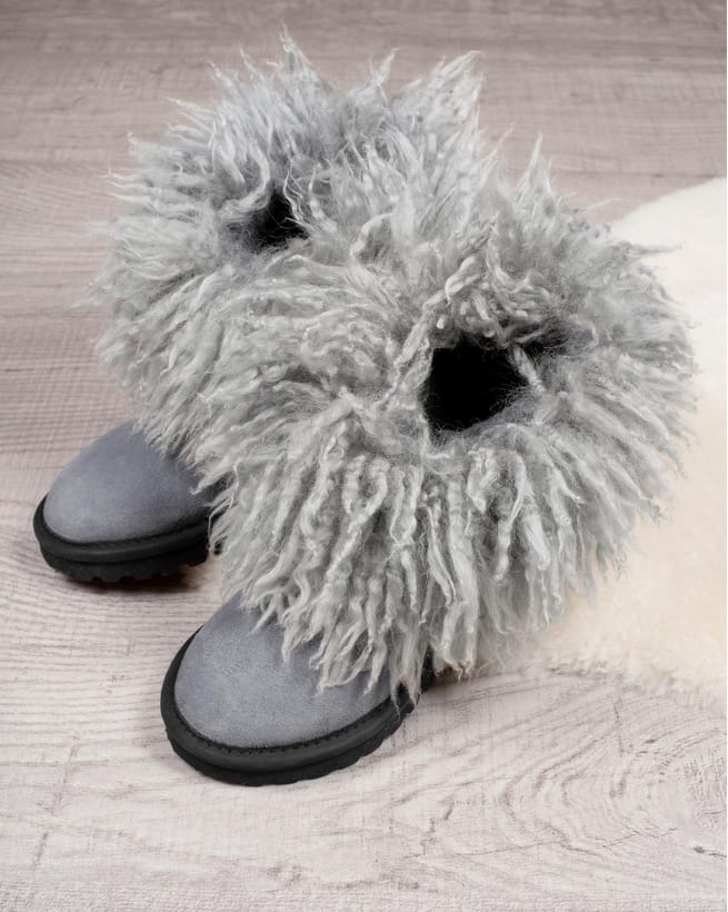 Each pair of slippers is crafted with a textured woollen outer and lined with dreamy shearling, encasing your feet in cloud-soft comfort that you'll never want to remove.